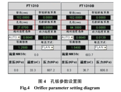 此次改造后,將2臺高級一體化孔板流量計分別裝入1.0658in(27.071mm)及2.531in(64.287mm)尺寸的孔板,以實現大孔板和小孔板對該油田全部油井產氣量測量范圍的全覆蓋,操作人員只需開關閥門,即可完成大小孔板的流程切換,避免了頻繁更換孔板造成損壞。在減少人員工作量與工作強度同時,有效提升了孔板流量計的計量精度(圖3、圖4)。