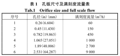 以某海上油田為例,該油田共有油井數23口,其單井產氣量分布由低到高的范圍約為(3x102)~(9x10*)m'/d。由于該油田油井產氣量范圍波動較大,單一開口尺寸孔板的滿刻度量程無法滿足單井計量要求(表1),需要頻繁更換孔板流量計。人員技能水平的差異,將不可避免地帶來操作失誤的情況,影響計量精度。為此通過對計量分離器生產流程進行優化設計,擴大孔板流量計的測量范圍以減少人員直接接觸所引起的操作失誤。