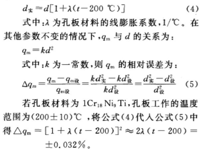 測量水蒸氣流量時,如果設計工況為200℃,孔板內徑為d,則孔板內徑在實際工作狀態下的修正公式為:
