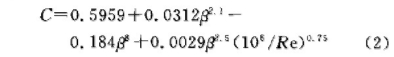 對于給定的標準孔板,當β為常數時,C僅是Re的函數C=f(Re)。在公式(1)中,將C用公式(2)而不是一個常數來代替,可提高計量的精度。