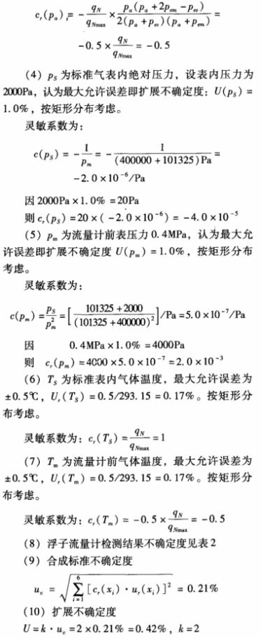 pa為大氣壓,用空盒氣壓表測得,其最大允許誤差為50Pa,則不確定度Ur,(pa)=50/101325=0.05%按矩形分布考慮。